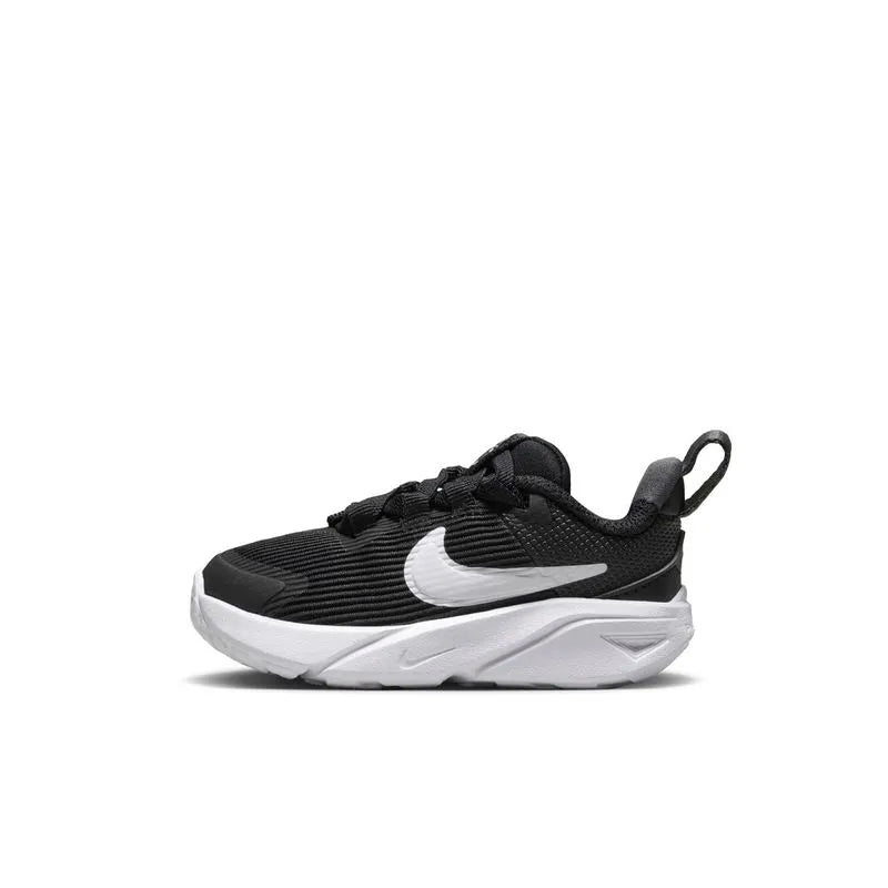 Sal más rápido de casa con la ayuda de las Star Runner. Con un diseño fácil de poner y quitar, la costura de la lengüeta te permite estirar la abertura para que puedas calzárselas rápidamente y poneros en marcha. La amortiguación suave en la mediasuela proporciona una sensación cómoda y elástica para que la acción nunca termine. El patrón se adhiere al asfalto, la hierba y la gravilla, al tiempo que la puntera envuelta en goma refuerza el diseño para que pueda conservar sus Star Runners durante muchísimo tiempo.