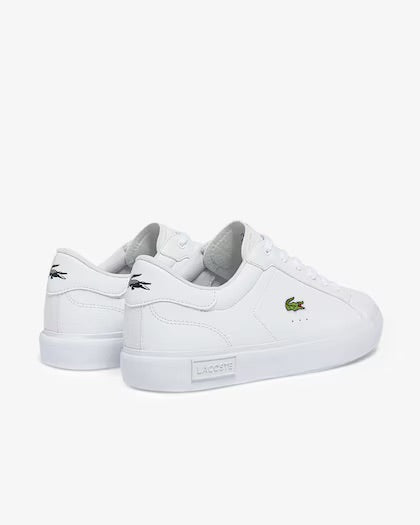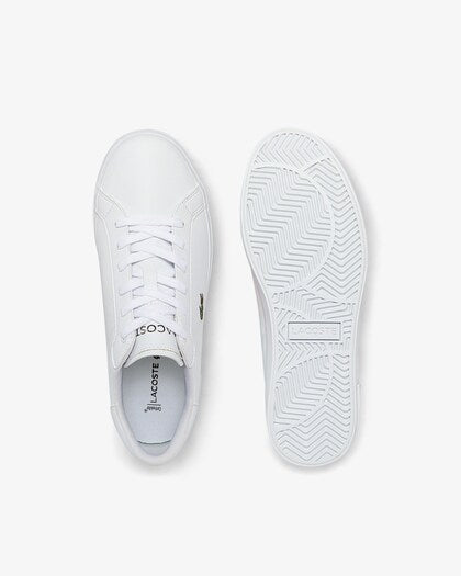 La Powercourt es todo un símbolo del auténtico estilo tenístico. Esta zapatilla lace up está confeccionada en piel sintética suave y se presenta en blanco inmaculado o negro elegante, ensalzada por sofisticados detalles de puntadas. La suela de goma revela una textura de espiguilla característica y dibujos exclusivos inspirados en la tradición de diseño de Lacoste. El cocodrilo verde de la casa asoma la cabeza en el lateral, subrayado por un trío de perforaciones que recuerdan a las pistas.