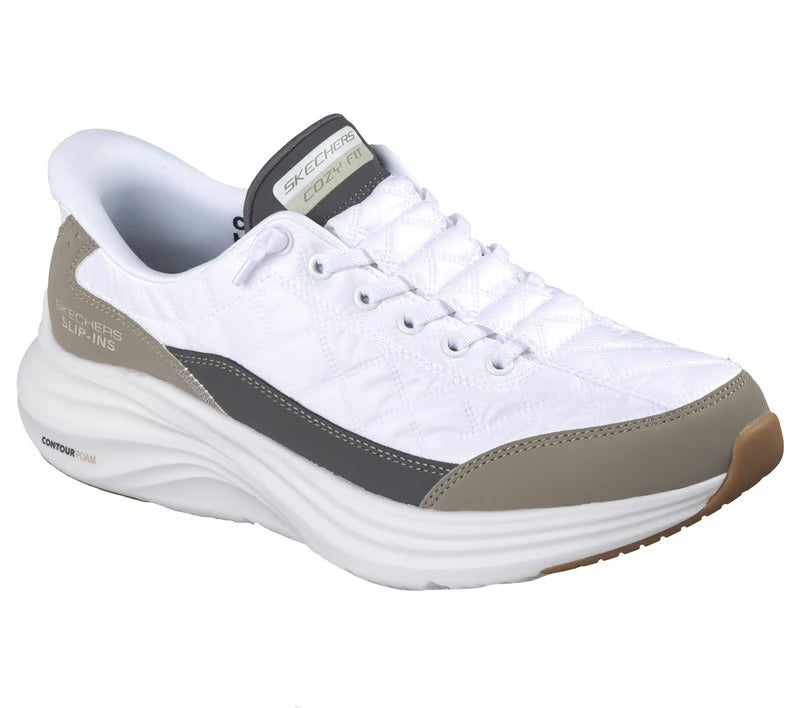 NO TIE FIT™ Envuelve tus pies en una comodidad sin esfuerzo con las zapatillas Skechers Hands Free Slip-Ins®: Contour Foam - Cozy Fit™. Diseñado con nuestro Heel Pillow™, este modelo sin cordones presenta una parte superior acolchada Cozy Fit™ y una capa superpuesta sintética con cordones elásticos ya atados, amortiguación Contour Foam™ en la media suela y nuestra característica plantilla con amortiguación Skechers Air-Cooled Memory Foam™.