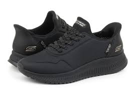 Zapatilla deportiva de la línea SLIP-INS de Skechers de color negro con parte superior fabricada en símil piel resistente.