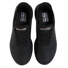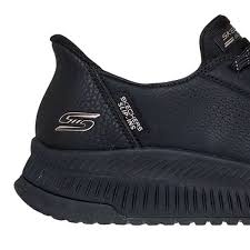 Zapatilla deportiva de la línea SLIP-INS de Skechers de color negro con parte superior fabricada en símil piel resistente.
