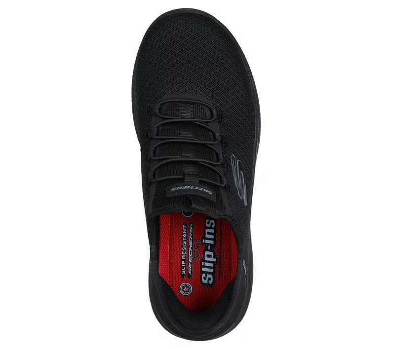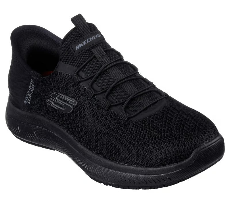 Disfruta de la seguridad antideslizante y cómoda del calzado sin cordones gracias a la Skechers Hands Free Slip-ins® Work™: Summits SR - Enslee. Este modelo TOUCHLESS FIT® para el trabajo presenta una parte superior de material sintético y malla de knit con nuestro Heel Pillow™, una suela antideslizante y una cómoda plantilla con amortiguación Skechers Air-Cooled Memory Foam™.