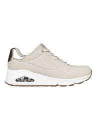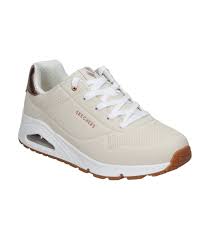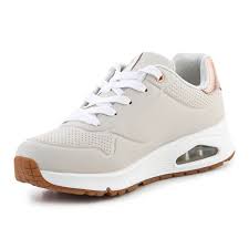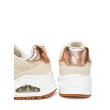 Sube el nivel de tu zapatilla con la comodidad y la amortiguación de la Skechers Street™ Uno Gen1 - Shimmer Away. Esta moderna zapatilla con cordones presenta una parte superior perforada de duraleather sintético con ribete metalizado, una cómoda plantilla Skechers Air-Cooled Memory Foam® y media suela Skech-Air® con cámara de aire visible.