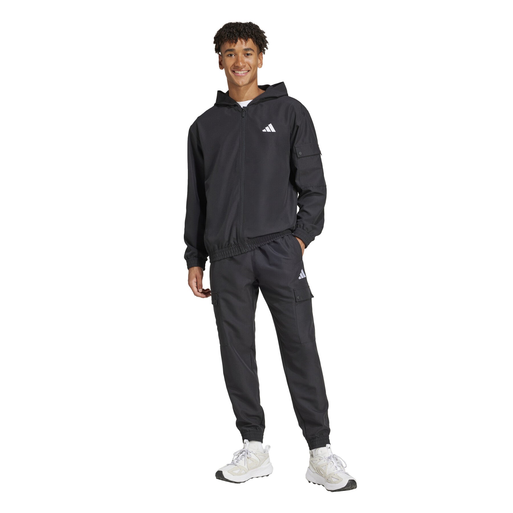 Lleva este chándal adidas de forma casual o más sofisticada, según la ocasión. La tela ligera está forrada con malla transpirable para mayor comodidad. Los logotipos de las 3 bandas en el pecho y la pierna añaden un toque deportivo. Tiene prácticos bolsillos de cargo. Ideal para mezclar y combinar, puedes asociarlo con tus piezas favoritas y variar los estilos. Este producto está diseñado con materiales 100 % reciclados. Al reutilizar materiales ya creados, contribuimos a reducir los desechos y nuestra dependencia de recursos limitados, con el fin de disminuir la huella ecológica de los productos que fabricamos.