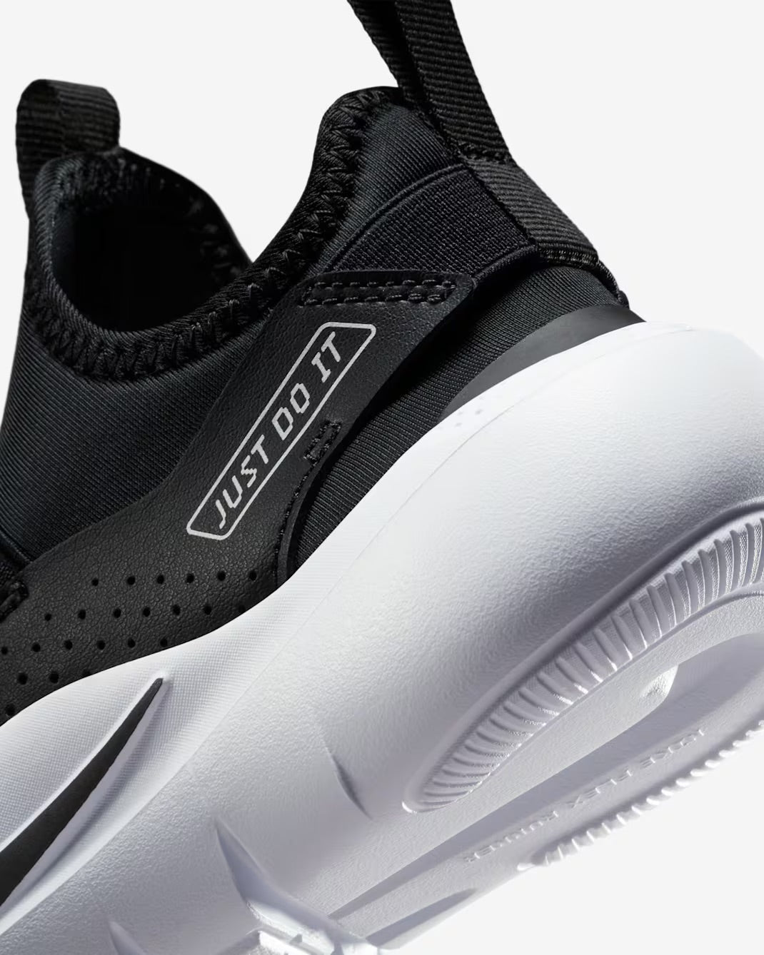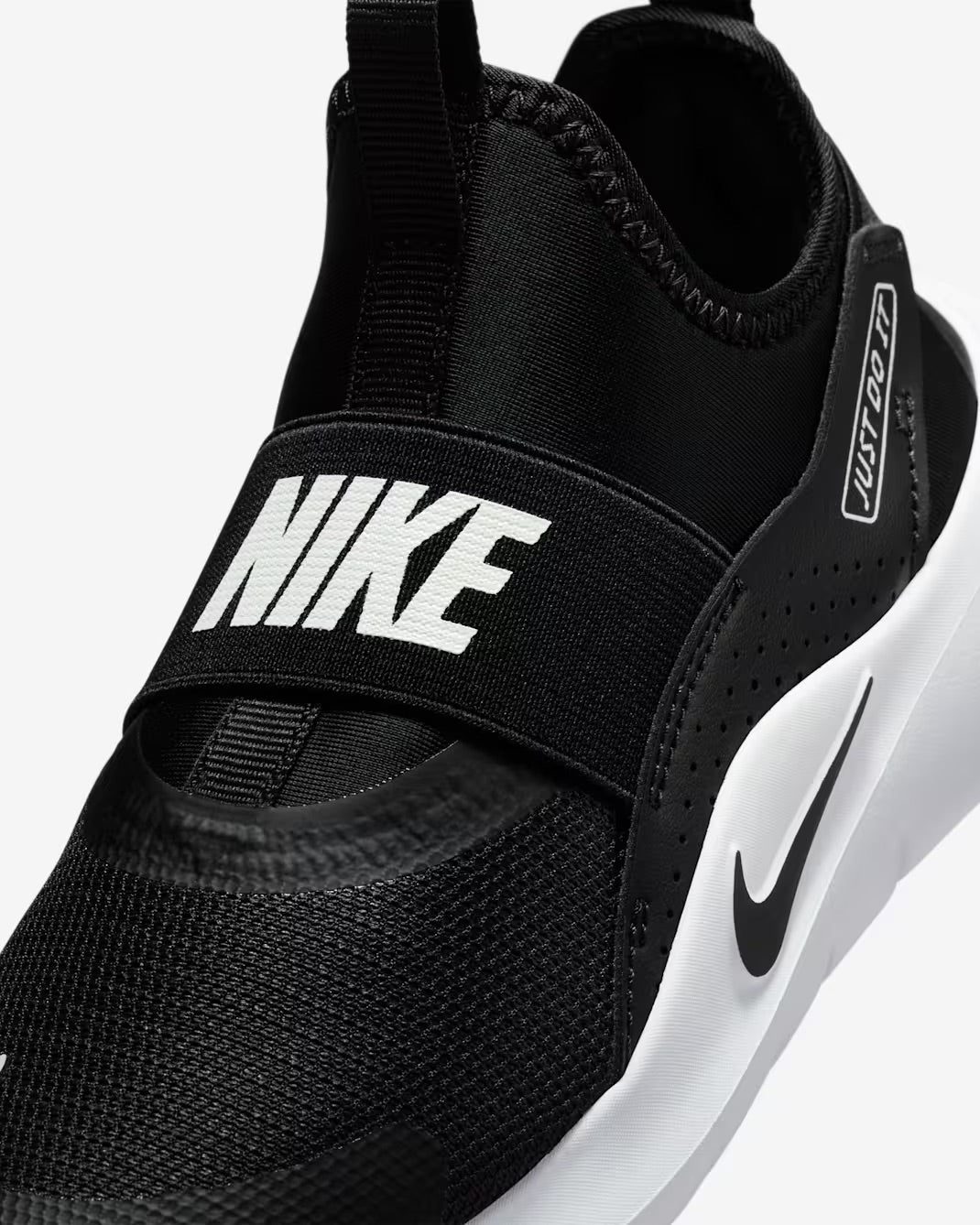 Las Flex Runner 4 son superfáciles de poner sin ayuda para empezar a jugar en cuestión de segundos. Su diseño tipo botín es flexible y tiene unas correas elásticas que aseguran el ajuste. Las ranuras flexibles de la suela exterior les permiten mover los pies de forma natural y caminar con equilibrio.