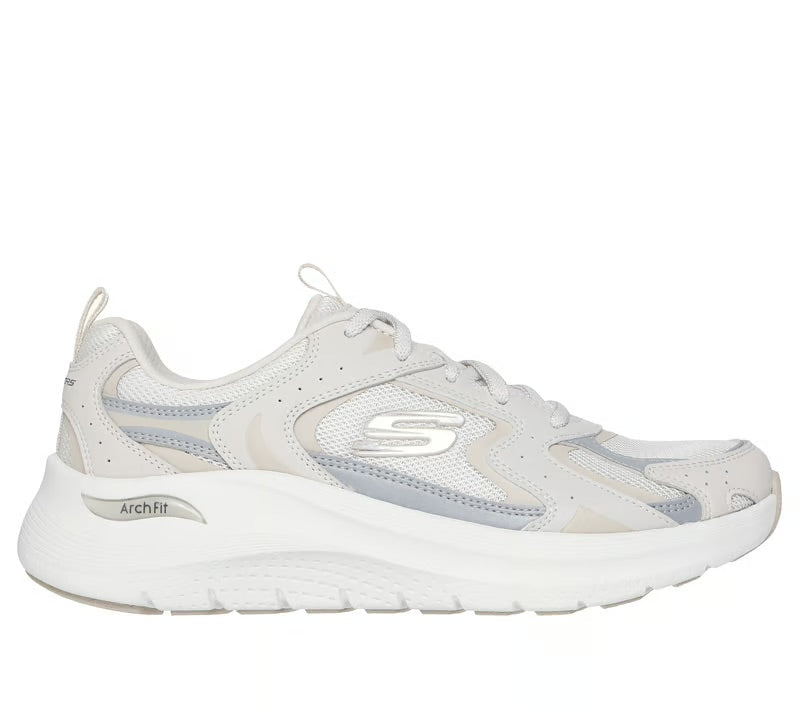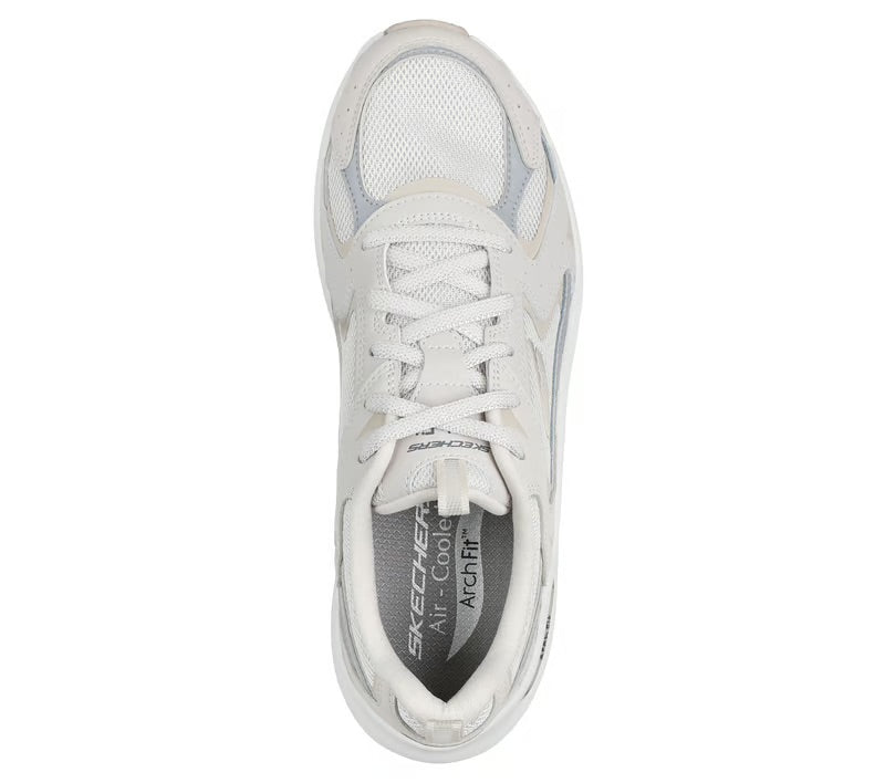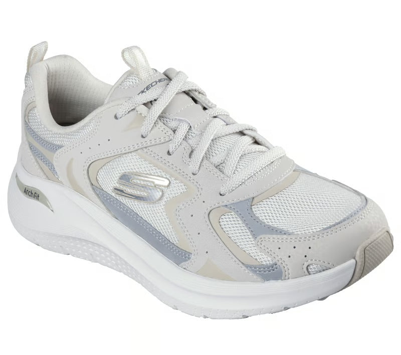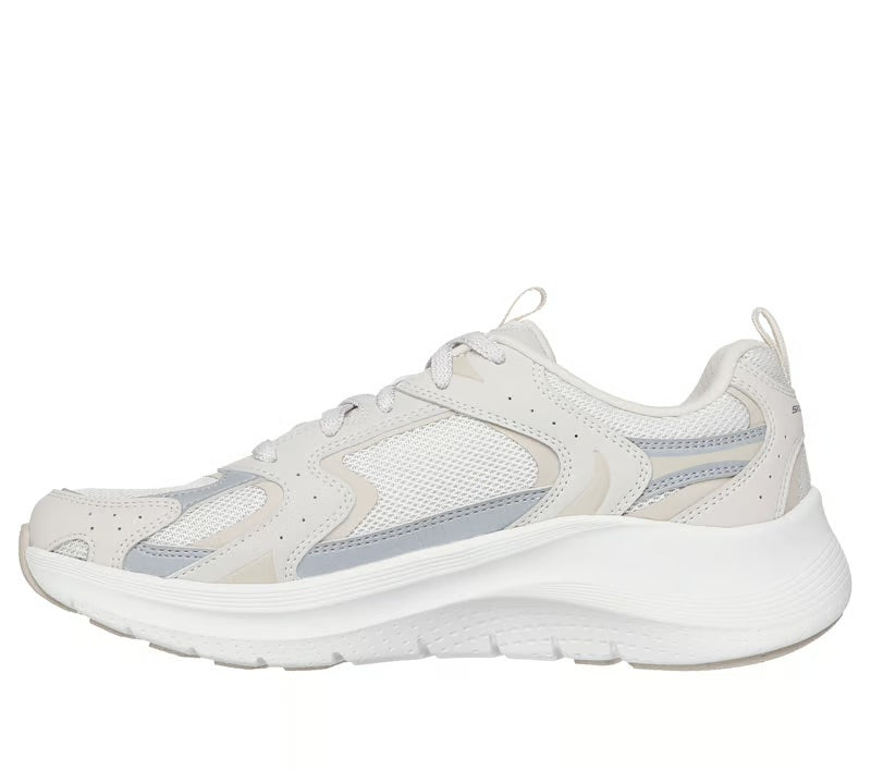 Comodidad durante todo el día y apoyo permanente convergen en el modelo Skechers Arch Fit[® 2.0 - Vintage Luxe. Este modelo deportivo con cordones ha obtenido el sello de aceptación de la APMA y cuenta con una parte superior de malla con capas superpuestas de piel, una plantilla Arch Fit® extraíble y una media suela ligera con amortiguación.