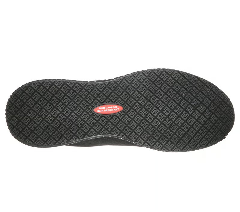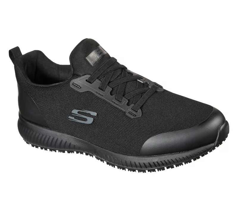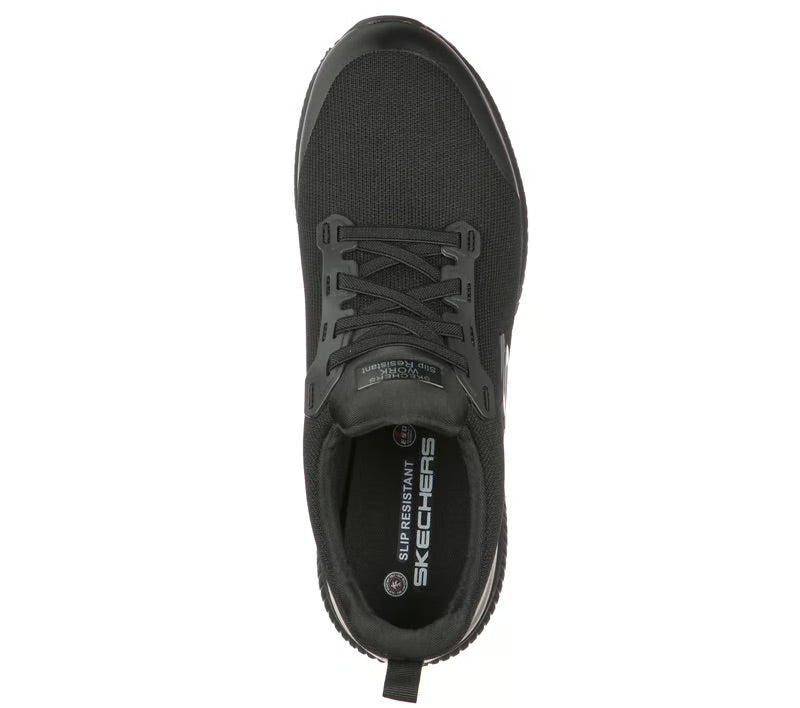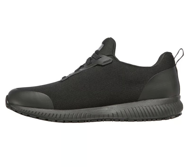 Vístete con comodidad y estilo todo el día con Skechers Work™: Squad SR - Myton ESD. Zapatilla de trabajo sin cordones, con parte superior de malla de knit suave, suela antideslizante, diseño antiestático y plantilla con amortiguación.