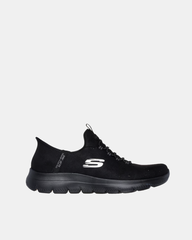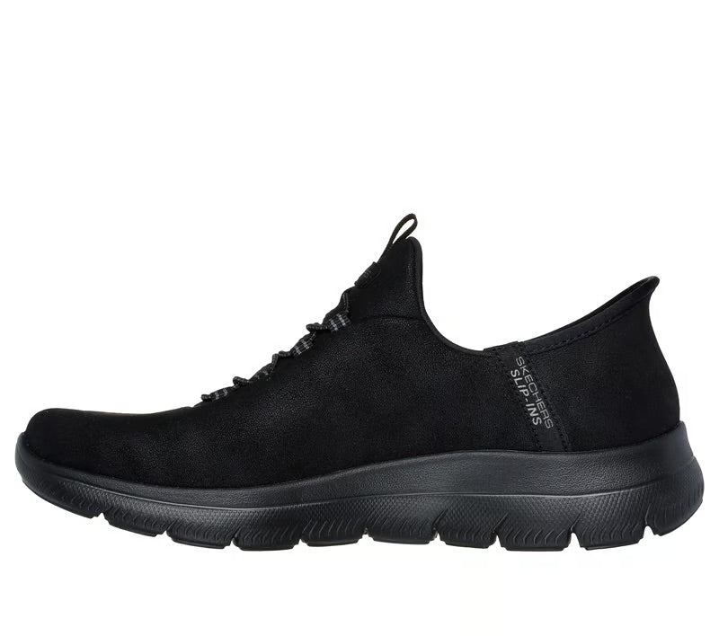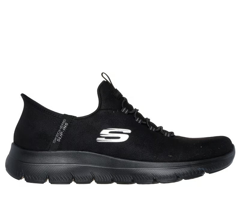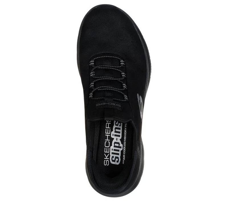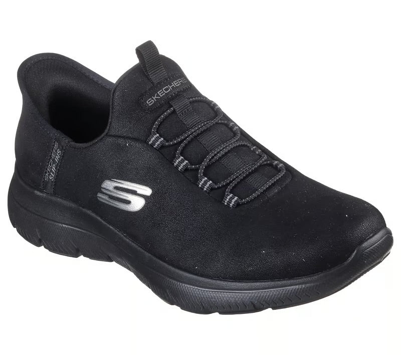 Aumenta el ritmo, cálzate sin agacharte y disfruta de una comodidad superior con Skechers Slip-ins®: Summits - Unknown Trail. Este modelo con cordones elásticos, diseñado con nuestro sistema Heel Pillow™, cuenta con una parte superior de duraleather vegano y una cómoda plantilla con amortiguación Skechers Air-Cooled Memory Foam™.