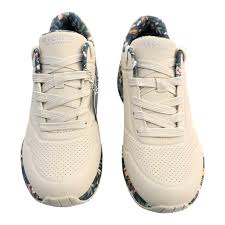 Las Skechers Uno - Majestic Garden 155583/NTMT ofrecen una fusión perfecta entre comodidad, moda y un toque artístico. Con su exclusivo diseño floral en tonos neutros y metálicos, estas zapatillas destacan por su elegancia y originalidad, ideales para quienes buscan un calzado con personalidad.
