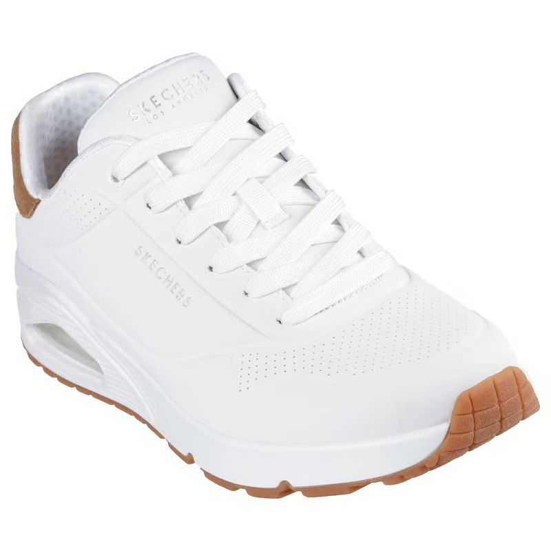 El estilo deportivo y refinado se une a la comodidad en las zapatillas Skechers Street™ Uno - Suited On Air. Estas zapatillas de estilo clásico con cordones cuentan con una parte superior de durabuck en bajorrelieve con ribete de ante en el talón, una plantilla Skechers Air-Cooled Memory Foam® y una media suela Skech-Air® con cámara de aire visible.