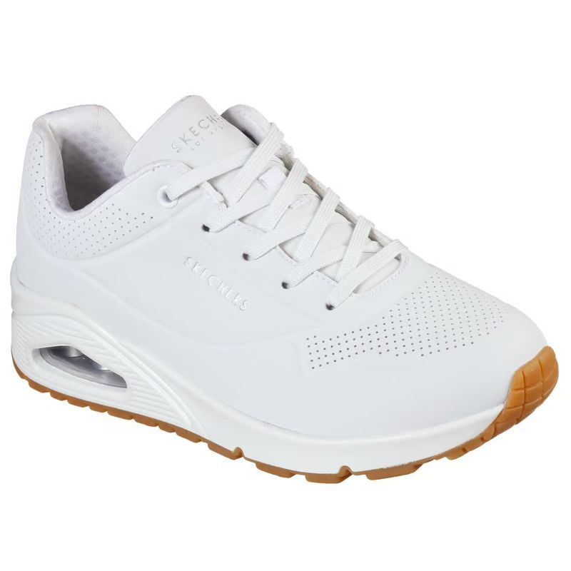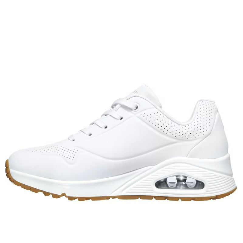 La comodidad de un modelo clásico con cámara de aire se actualiza con la Skechers Street™ Uno - Stand on Air. Moderno modelo con cordones con parte superior de piel sintética lisa y perforada, una plantilla SKECHERS Air-Cooled Memory Foam™ y media suela con cámara de aire visible Skech-Air.