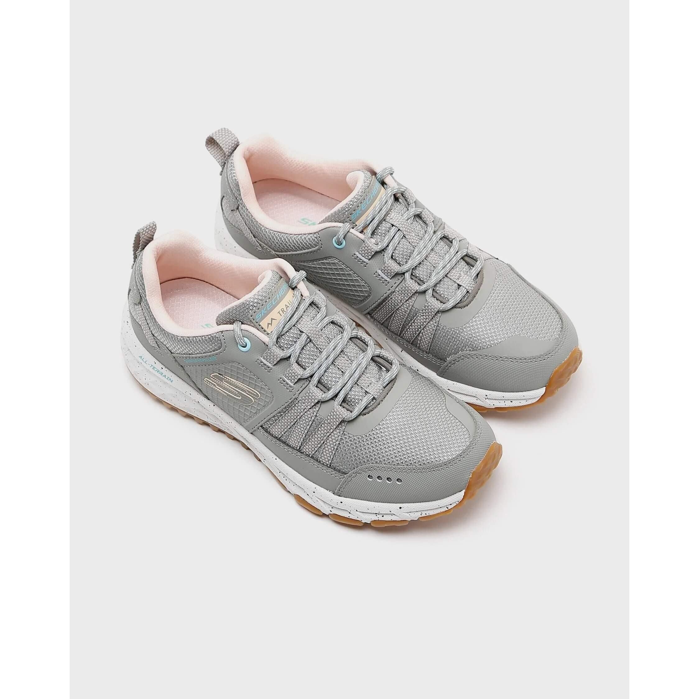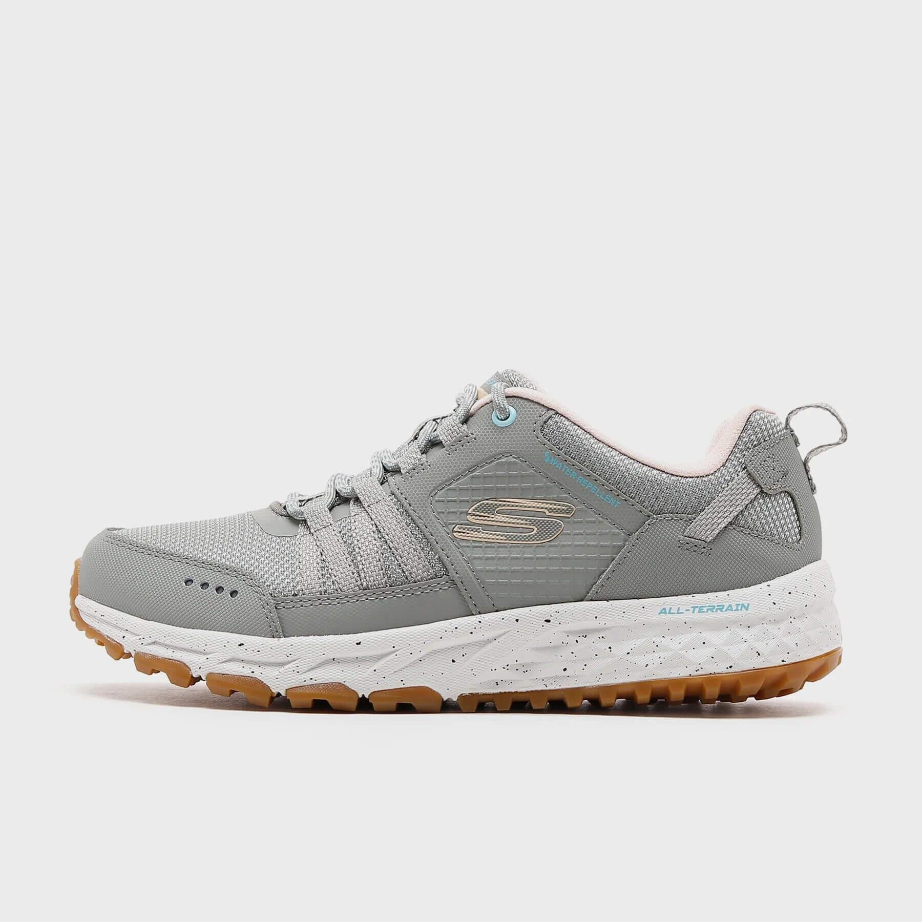 Domina el terreno con estilo y comodidad con la Skechers Escape Plan. Zapatilla de senderismo con cordones, con parte superior de piel impermeable, piel sintética y malla, y plantilla SKECHERS Air Cooled Memory Foam®.