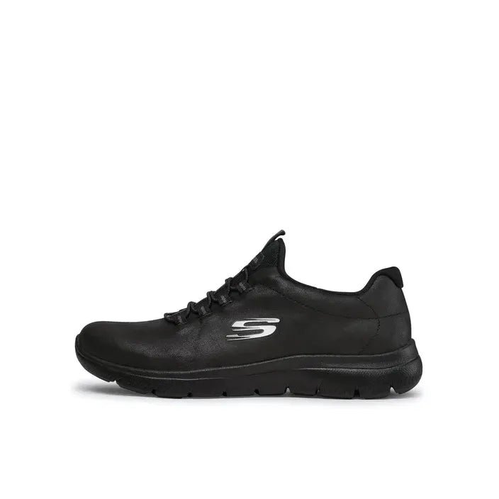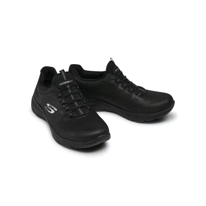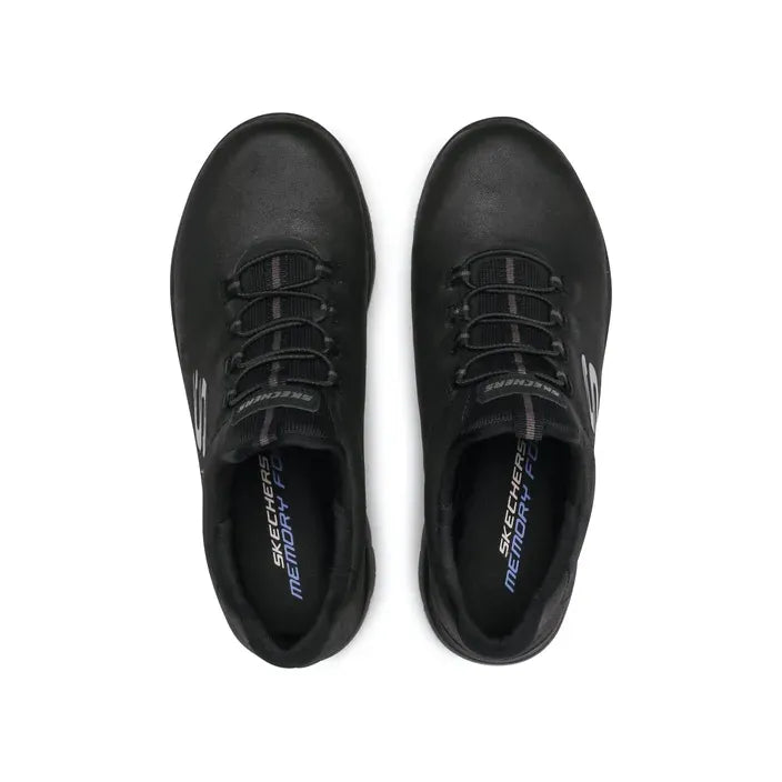 Aumenta el ritmo, cálzate sin agacharte y disfruta de una comodidad superior con Skechers: Summits - Unknown. Este modelo con cordones elásticos, diseñado con nuestro sistema Heel Pillow™, cuenta con una parte superior de duraleather vegano y una cómoda plantilla con amortiguación Skechers Air-Cooled Memory Foam™.
