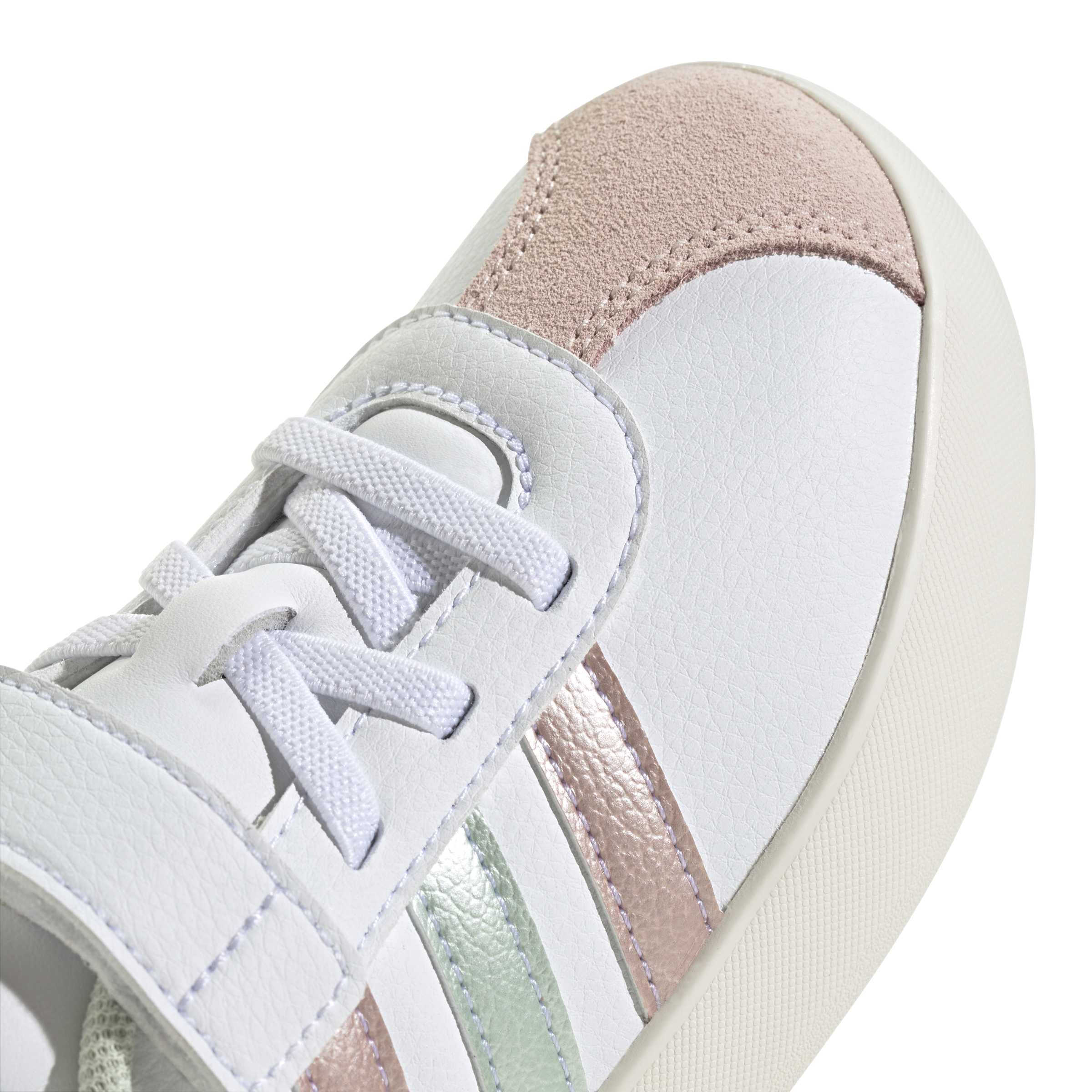 Clásica y deportiva, esta zapatilla inspirada en la estética del skate es perfecta para los peques más activos. El empeine de piel y la puntera de ante suave ofrecen mayor resistencia al desgaste y estilo. La suela de goma le proporciona una excelente tracción en todo tipo de superficies. Los cordones elásticos te permiten calzarle y descalzarle fácilmente y la correa superior autoadherente garantiza un ajuste seguro.