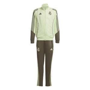 Demuestra tu pasión por el Real Madrid de pies a cabeza. Decorado con colores inspirados en la segunda equipación del club, este chándal de fútbol adidas para jóvenes promesas luce el famoso escudo del equipo madrileño en el pecho y la pernera. Se ha confeccionado en un suave tejido de punto doble con tecnología transpirable AEROREADY que mantiene la piel seca mientras entrenas o animas desde las gradas.