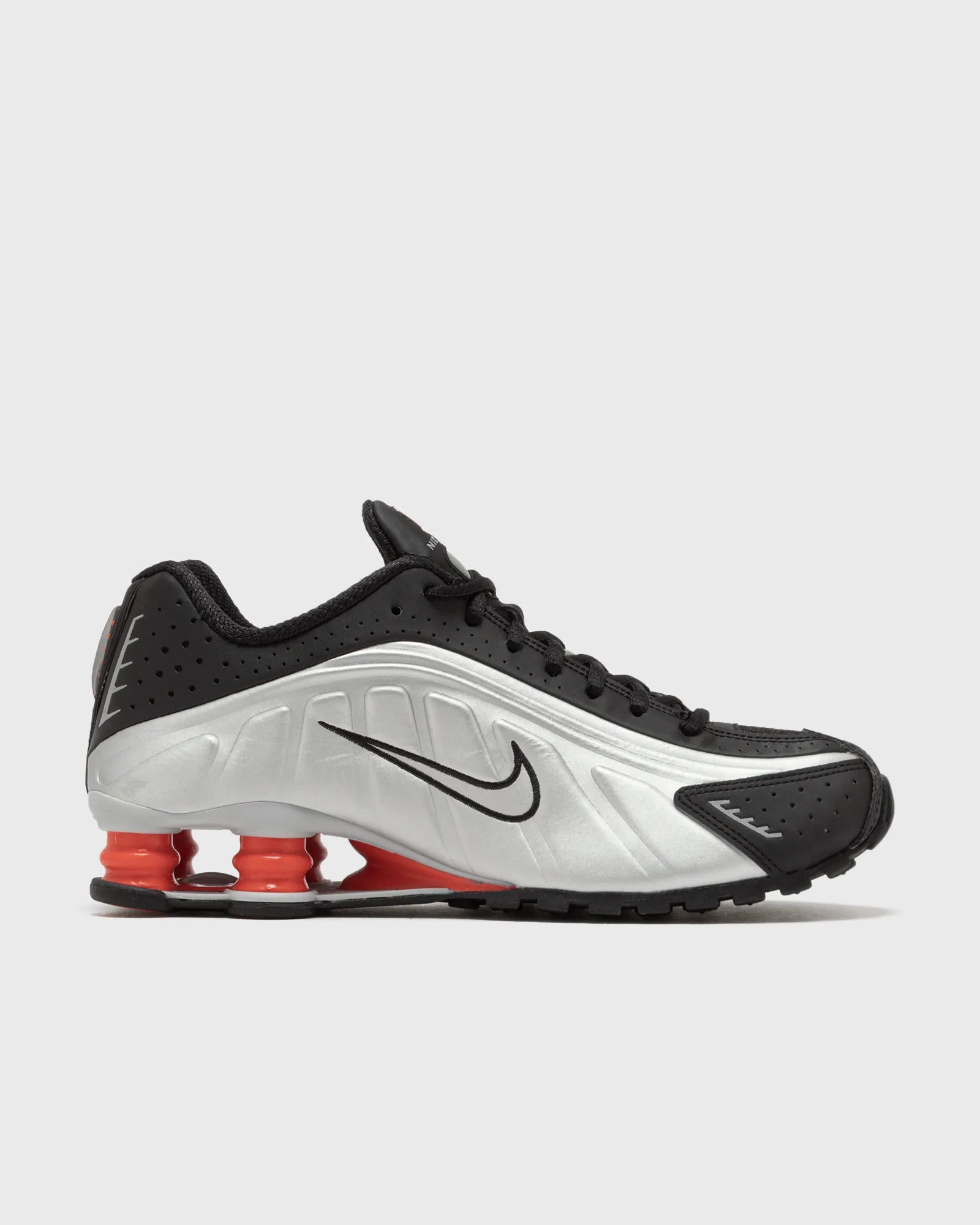 Las Nike Shox R4, una versión rediseñada del icono de principios de los 2000, recrea las originales con sus líneas de diseño futurista y su amortiguación de rendimiento. Las columnas de las Nike Shox en el talón distribuyen el peso para maximizar la comodidad y ofrecen un look urbano de lo más llamativo.