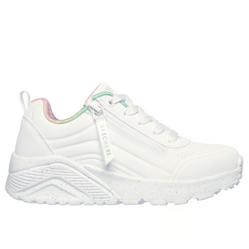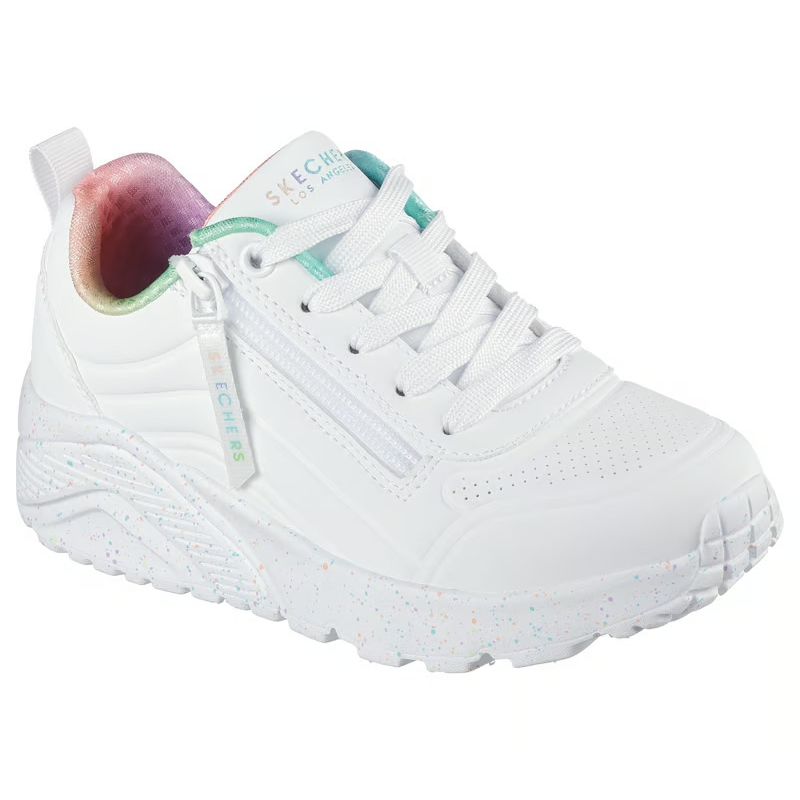 Ve a la moda y disfruta de la comodidad de las Skechers Street™ Uno Lite - Vivid Splash con amortiguación. Estas zapatillas con cordones presentan una parte superior monocromática de durabuck, un tipo de cierre Skechers Adaptive Closure y una plantilla con amortiguación Skechers Air-Cooled Memory Foam™.