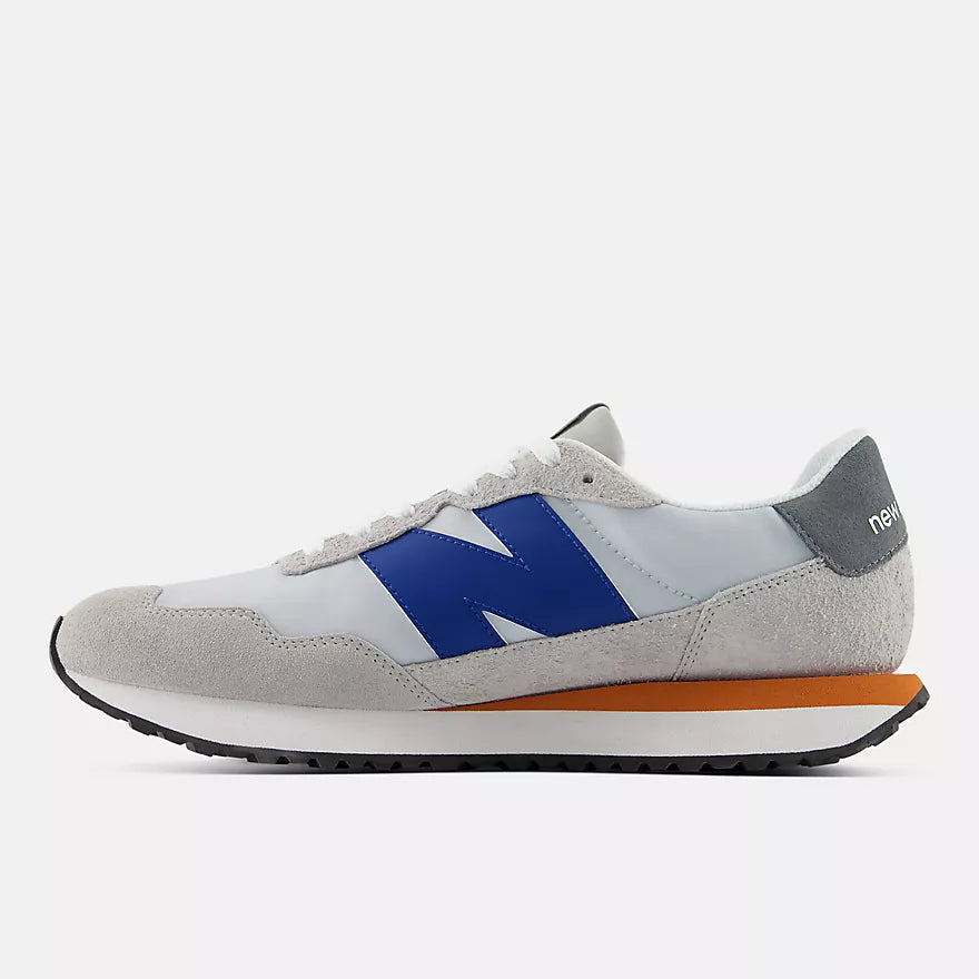 Podría decirse que las zapatillas de running de los 70 eran engañosamente sencillas. Si bien carecían de la tecnología visible y el diseño agresivo de años posteriores, las innovaciones de la década de los 70 sentarían las bases de la respuesta actual. La 237 es una reinterpretación contemporánea de la herencia del running de los años 70, que fusiona múltiples inspiraciones de diseño tradicional en una silueta contemporánea engañosamente simple y excepcionalmente versátil. Su entresuela de EVA, la suela en forma de espiga y un empeine estilizado ofrecen un punto de partida clásico donde asentar toques modernos, como la marca «N» de gran tamaño, una entresuela de mayor longitud y bandeleta y ribete inspirados en los caimanes. Se podría decir que la combinación entre el aspecto familiar y las exageradas novedades de la 237 son la forma más sencilla de llamar la atención.